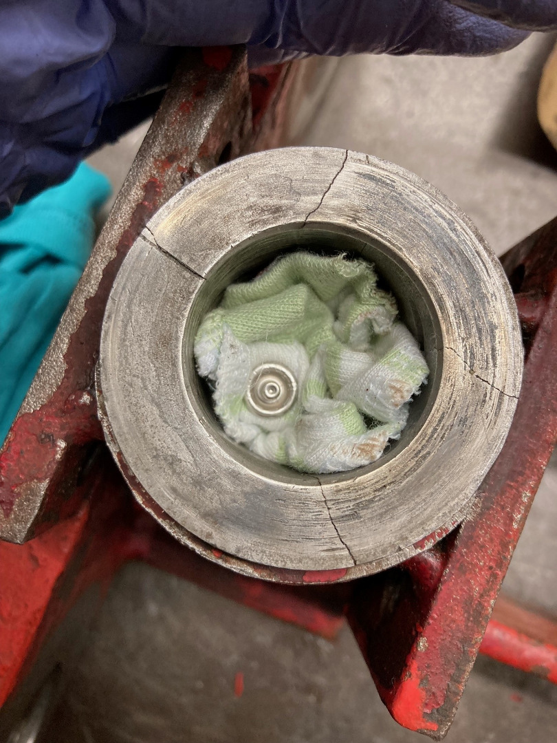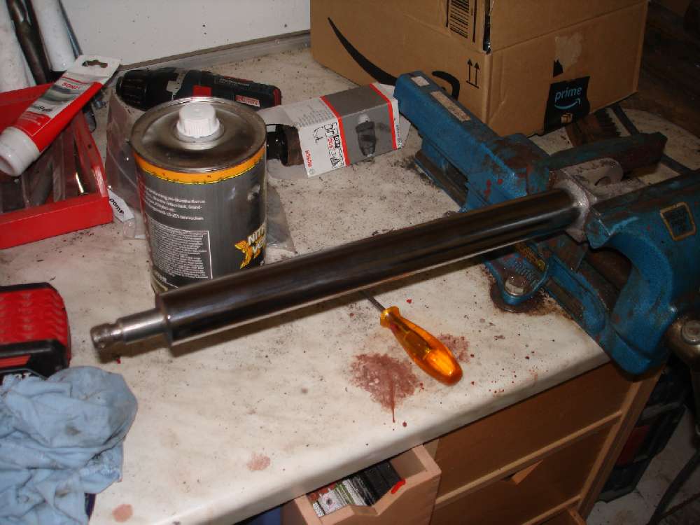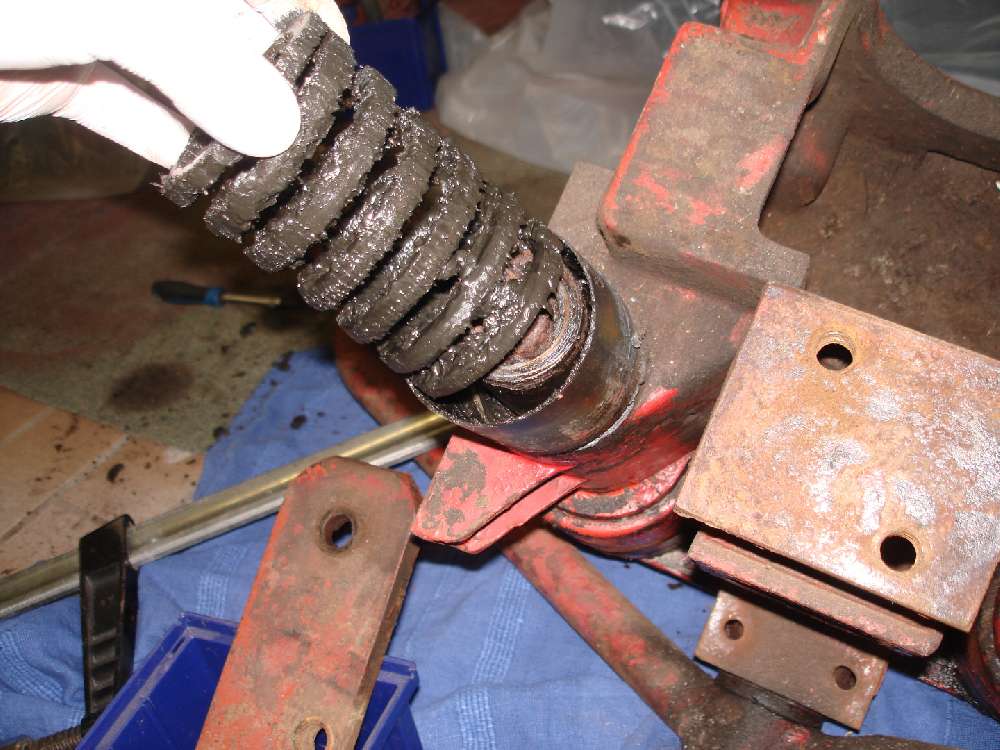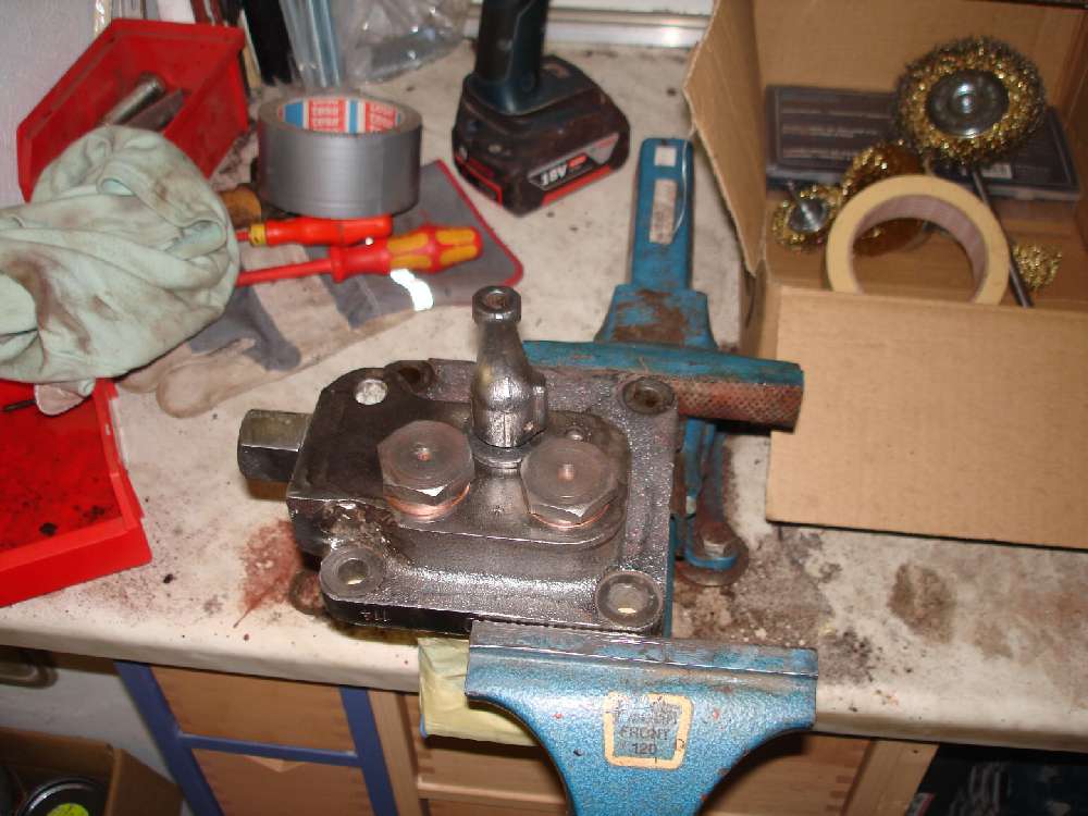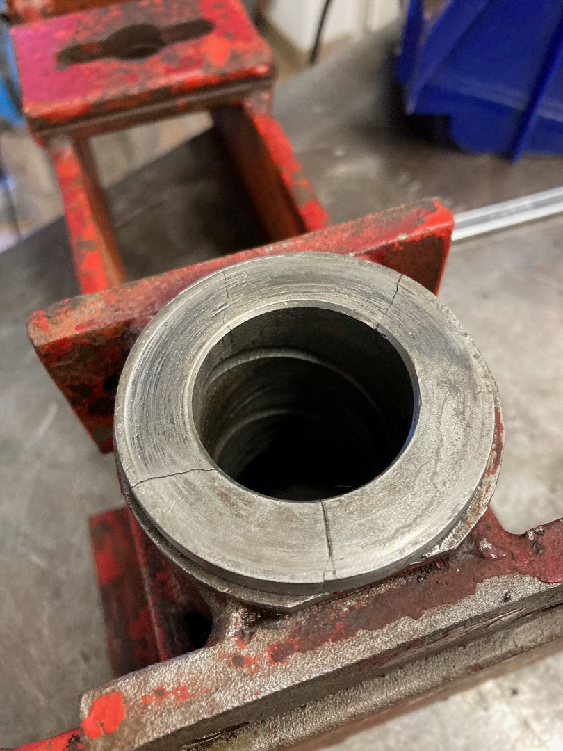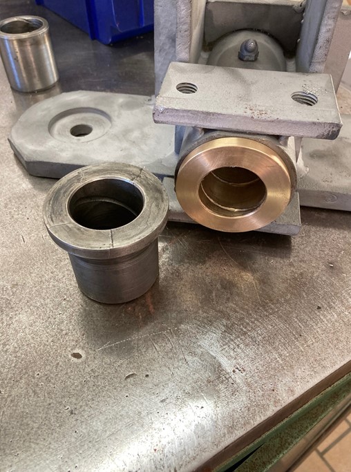 Nach dem alle Bauteile von Fett und Schmutz befreit waren, kam eine mehrfach gerissene Bundbüchse zum Vorschein