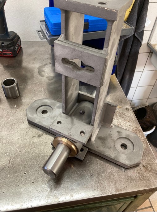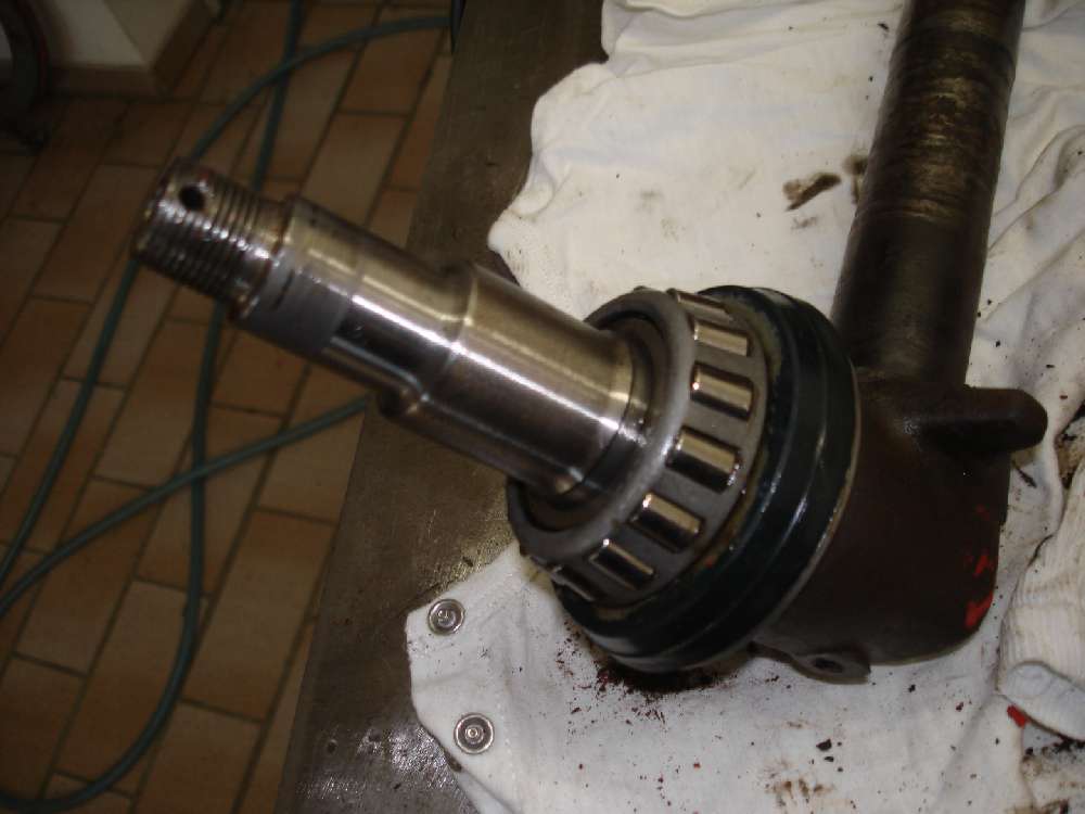 Die Vorderachse wurde auch gesandstrahl und überarbeitet. Hier gab es einmal komplett neu Lagerbuchsen für den Vorderachsbock inkl. neuem Vorderachstragbolzen.
