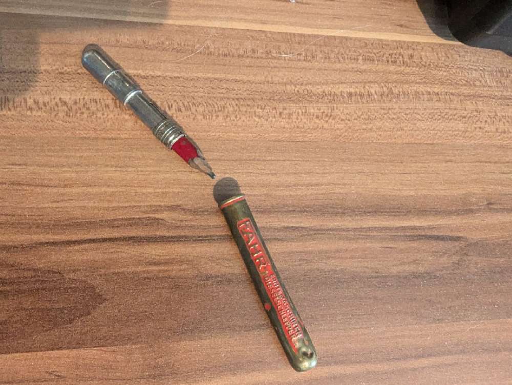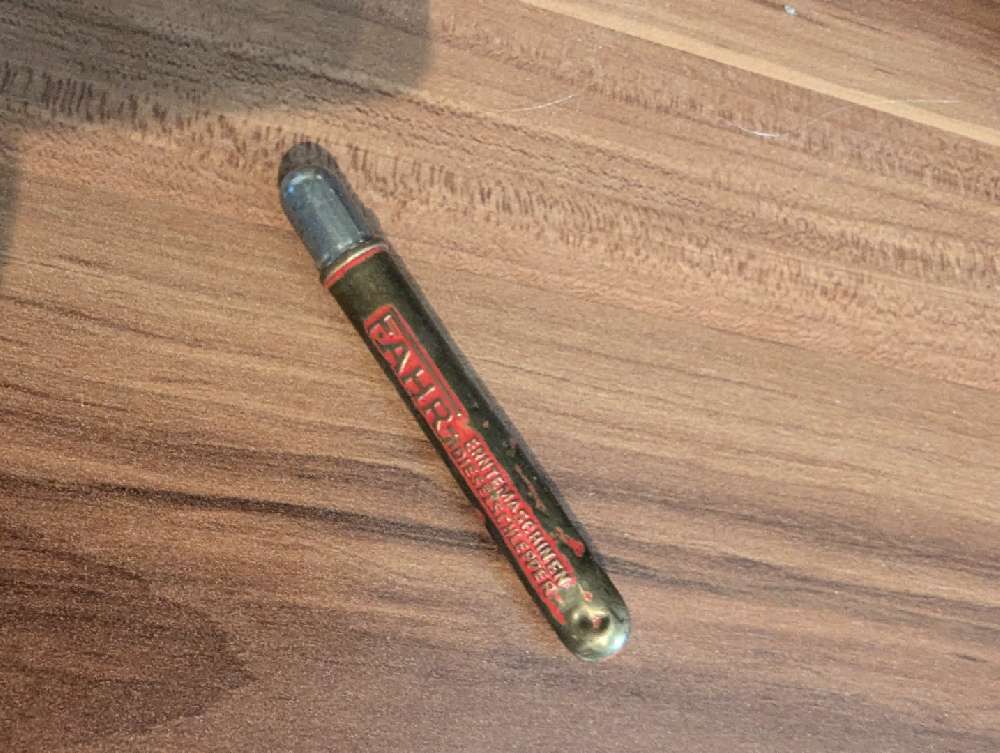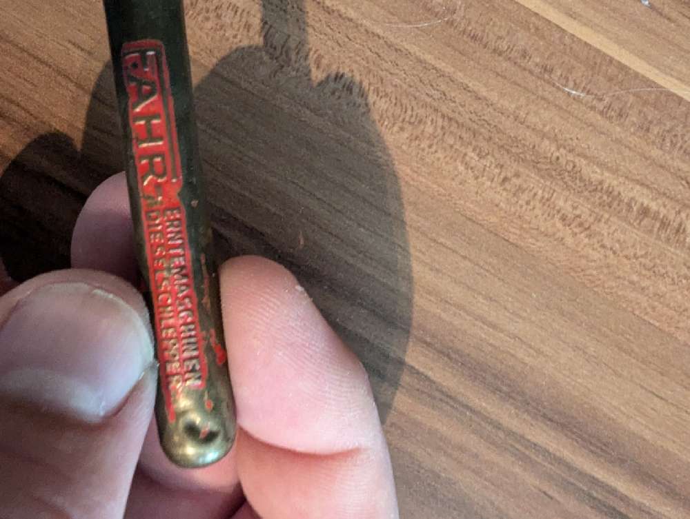 Hallo Wollitell , entschuldige das ich erst jetzt antworte , aber im Forum ist nicht viel los, deswegen schau ich nur alle paar Wochen mal vorbei. Anbei die gewünschten Fotos , eigentlich nichts besonderes Blechröhrchen mit Prägung und eine Schutzkappe.