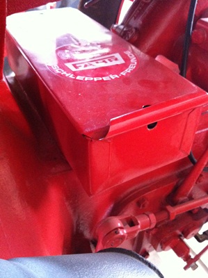 Habe noch zwei Bilder gemacht vom Werkzeugkasten inkl. Deckel, dieser ist Überfälzt und wird im Rahmen des Werkzeugkastens geschoben. Das Loch im Deckel und im Werkzeugkasten ist höchstwahrscheinlich für ein Vorhängeschloss