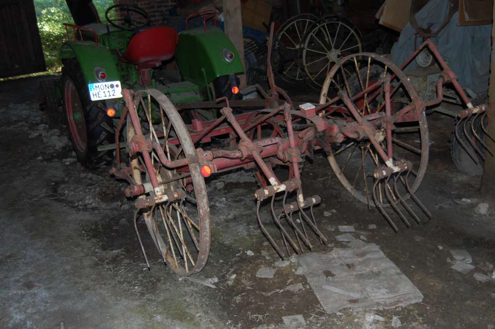 Der Heuwender ist komplett, auf Traktorzug umgebaut und funktioniert meines Wissens einwandfrei.