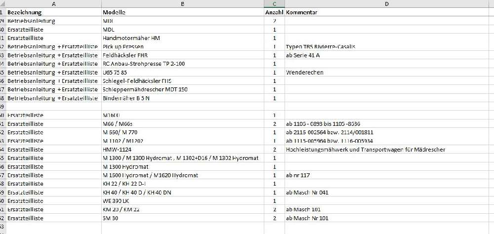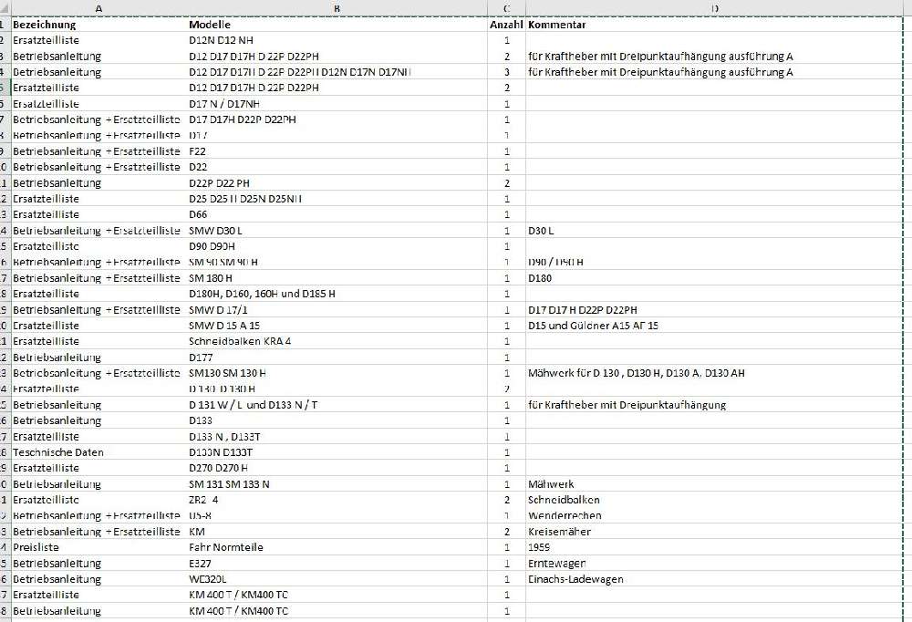 Biete Fahr Anleitungen, (keine Nachdrucke) original Ersatzteile an. Gerne bieten wir Hilfe bei Fragen an. Darüber hinaus haben wir Prospekte von nahezu allen Herstellern von Landmaschienen.