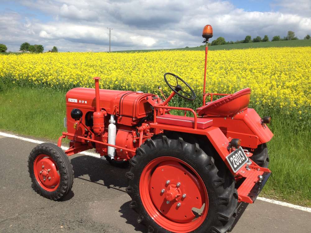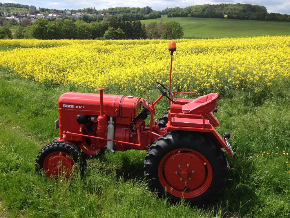 Mit 6 Jahren durfte ich meine ersten Fahrversuche auf Papas Schoß mit unserem Fahr D17 N unternehmen. Der Traktor befindet sich seit 1954 in unserer Familie und war bis 1964 auf unserem kleinen Bauernhof im Einsatz. Danach nur noch gelegentlich am Wochenende. Seitdem stand er im Schuppen und fristete ein einsames Dasein. Sein bester Freund, ein Anhänger der GI´s aus dem 2. Weltkrieg welcher von letzeren hier zurückgelassen wurde rostete in der Wiese vor sich hin und wurde Ende 2010 verschrottet.