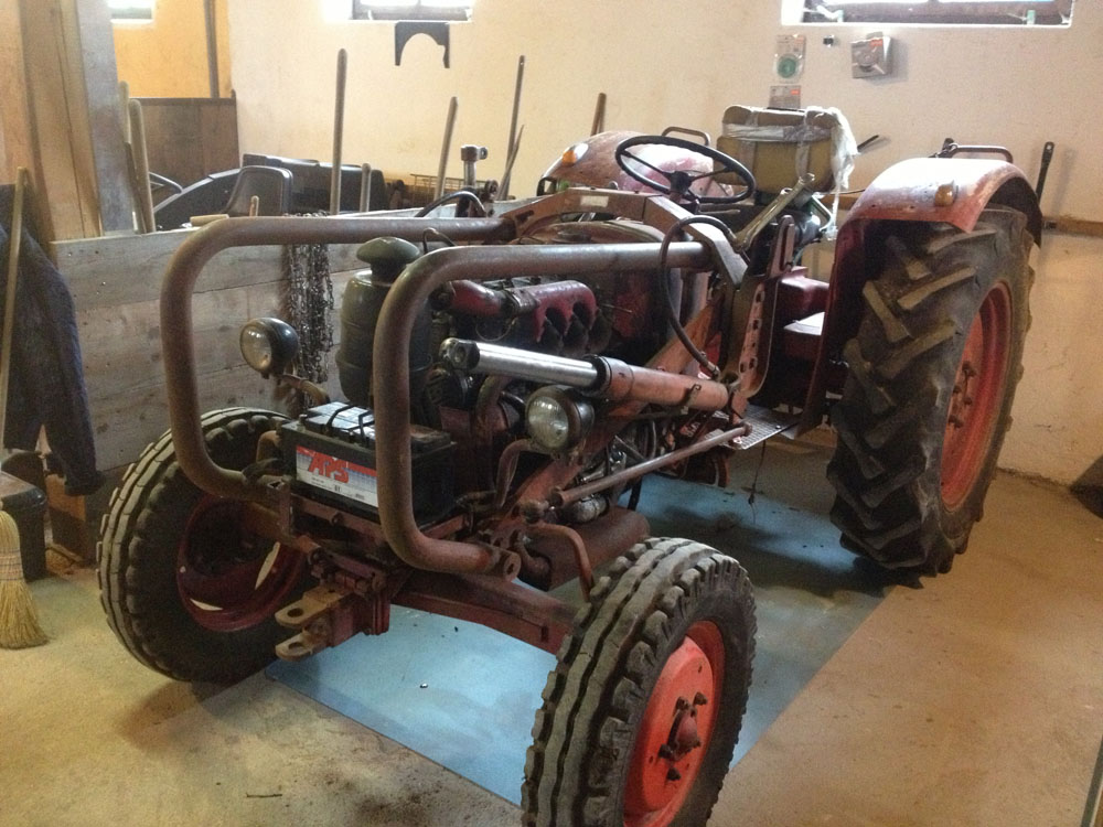 Die Kotflügel, Heckhydraulik und Elektrik warten noch auf ihre Restauration, aber zumindest auf dem Hof tut der Fahr alles was er soll, gehört mittlerweile zur Familie und trägt den Namen " Bob "