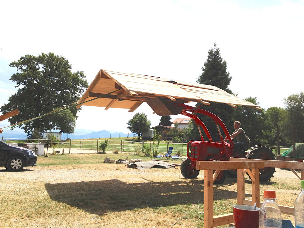 Das Dach musste entfernt werden und das klappte so gut das es nach der Reperatur auch den selben Weg zurück nahm.