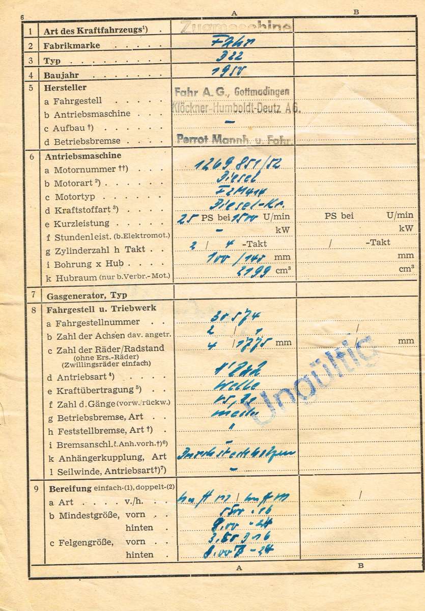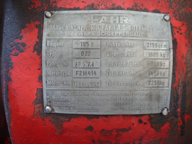 Grias Euch, liebe Fahr-Schlepper Freunde. Ich bin der Eugen aus dem Allgäu und schon gut ein Jahr bei Euch Mitglied. Leider die liebe Zeit .... Aber ich hab von Euch schon sehr viel Info entnehmen können. Vielen Dank !! Vor ca. 2 Jahren habe ich den Fahr D22/25PS BJ 5o ( zurück ) kaufen können. Diesen Schlepper wurde 1950 von meinem Schwiegervater gekauft. Hatte dann gleich eine 3 Tonnen - Seilwinde mit Stütze alles (Spezialanfertigung) anbauen lassen, da er viel im Holz gestreckt hat. Bis dahin mit 2 Kaltblüter Pferden. 1970 verkaufte er den Fahr D22 wieder für einen größeren. Als ich erfuhr das dieser D22 beim dem Nach - Besitzer noch in der Scheune stand, kaufte ich ihn umgehend wieder zurück (in seine alte Heimat). Somit bin ich jetzt "stolzer" Besitzer von diesem "Goldstück".